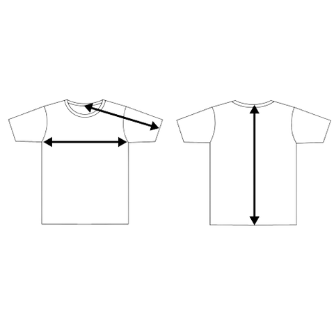 | BODY LENGTH Lay garment flat (face down). Measure from center back neckline seam straight down to bottom of the front hem. BODY WIDTH Lay garment flat. 1" below the armhole, flat measure the garment across the chest. SLEEVE LENGTH Lay garment flat (face down). Measure from center back neck to outer edge of shoulder seam, then along outer edge to sleeve end. |